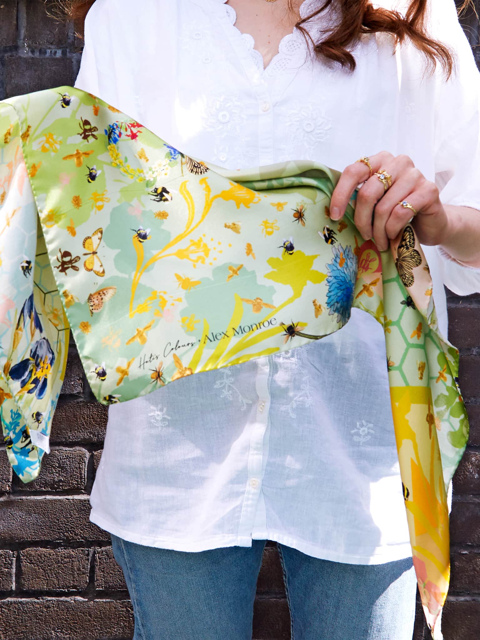 We have collaborated with our friends at Heti’s Colours to create a limited edition 'Bees in Bloom’ silk scarf - a joyful celebration of bees, and nature in gorgeous, uplifting colours. Since launching this scarf in 2021, £20 from the sale of every scarf has been donated to Bees for Development.