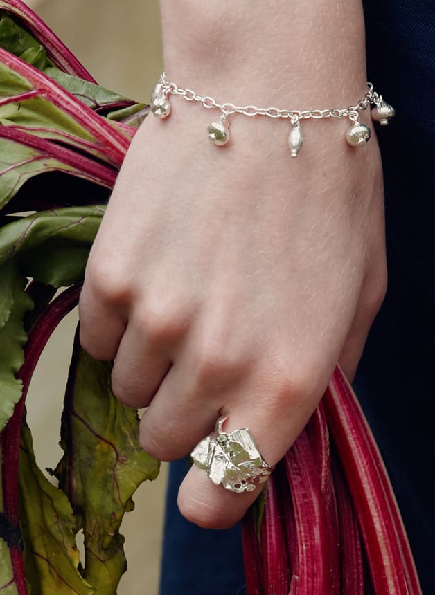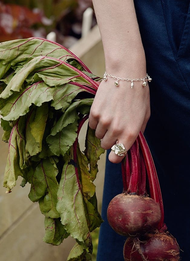 The Potager is made in Sterling Silver to capture the wonderful textures found in nature, with the option of a Fairmined Gold-Plate finish.