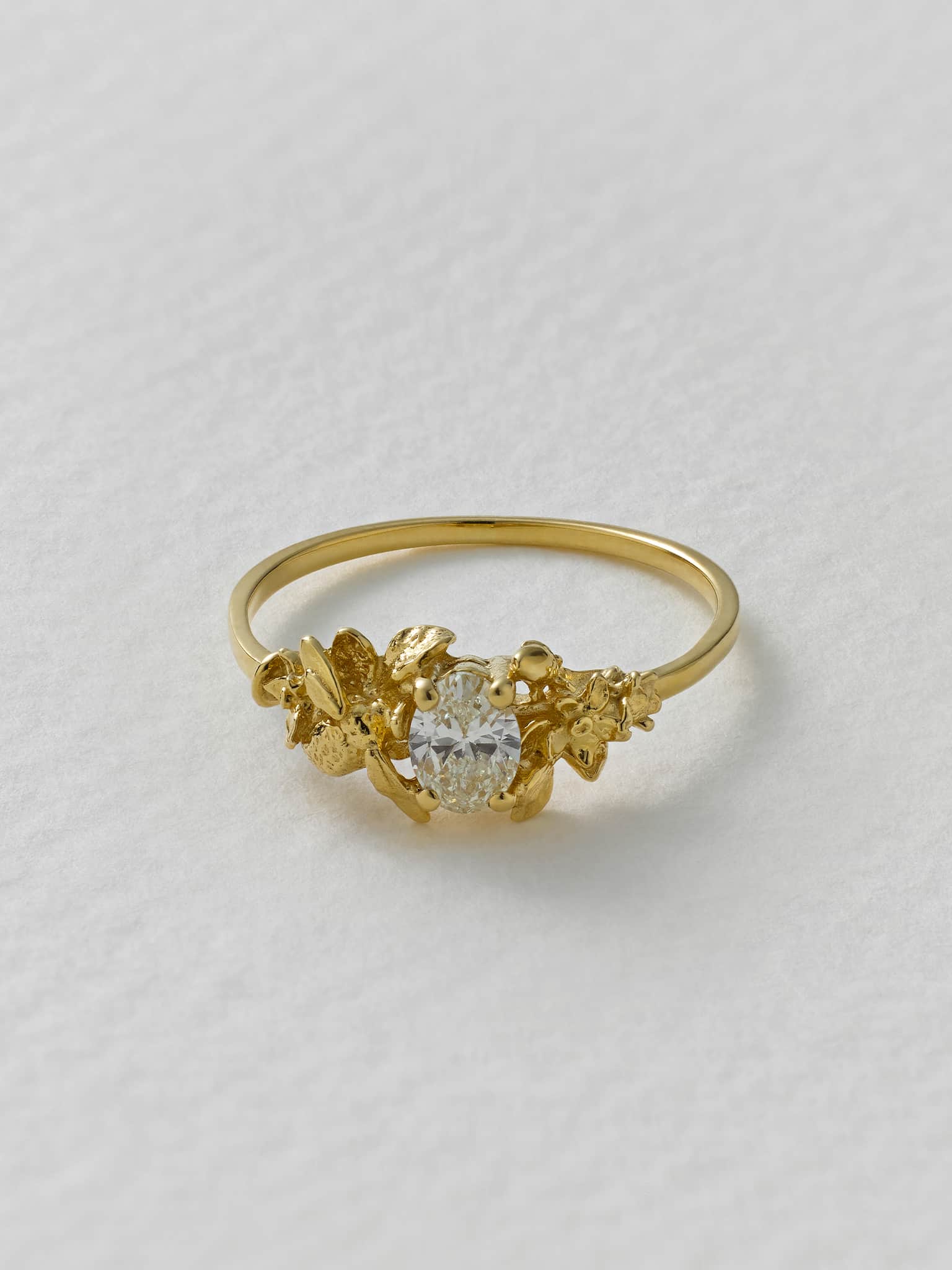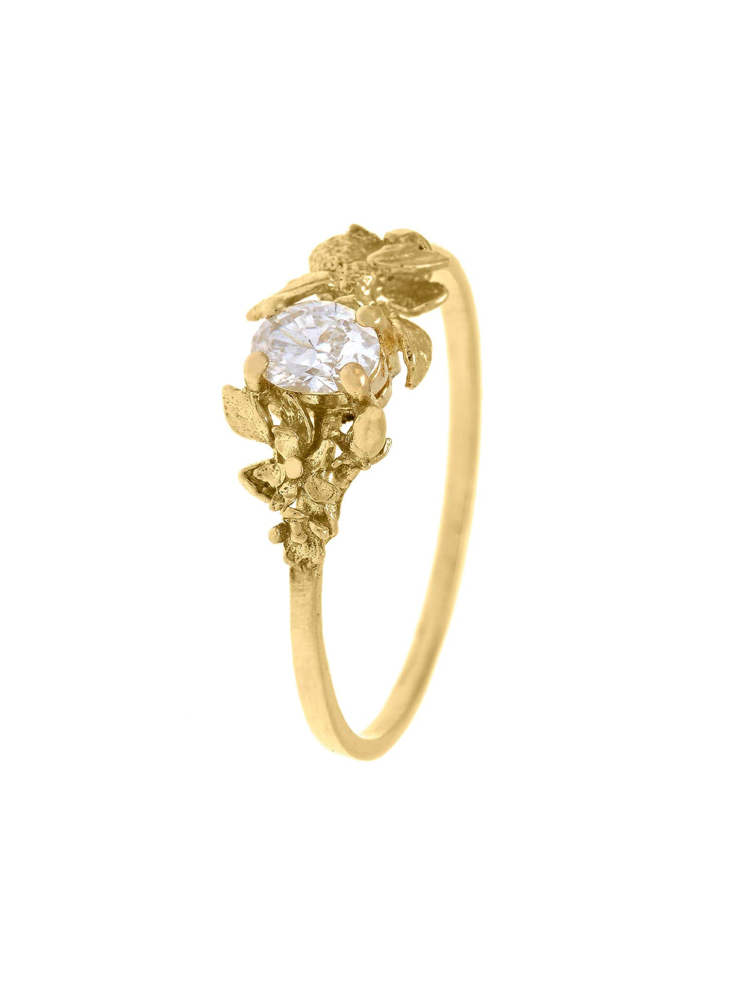 A striking oval diamond shines from the centre of this Beekeeper Ring, adorned with our signature bee and floral details. Discover a special fine jewellery collection created in celebration of the 10th anniversary of Alex’s iconic Bumblebee Necklace! In 'The Beekeeper', flowers and leaves entwine to reveal miniature bees nestled within. Handcrafted from 18ct gold or platinum and illuminated with ethically sourced diamonds, 'The Beekeeper' is handcrafted in our London Studio.