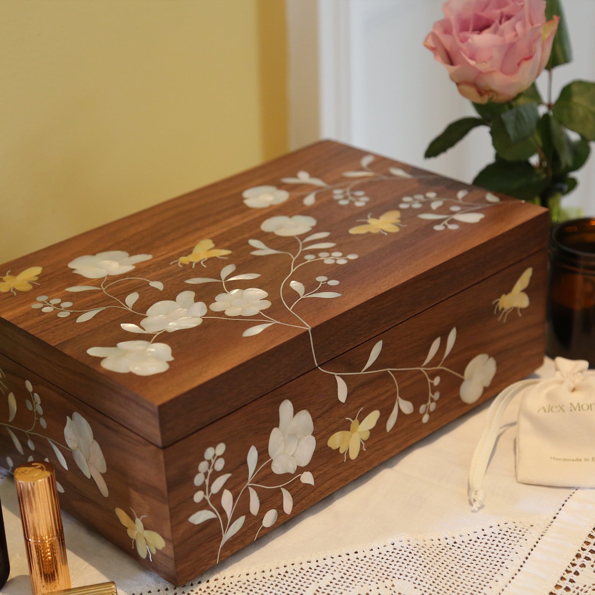 Designed in collaboration with Turquoise Mountain and made by artisans in Jordan, our Bees in Bloom Heirloom Jewellery Box is a celebration of traditional craft.