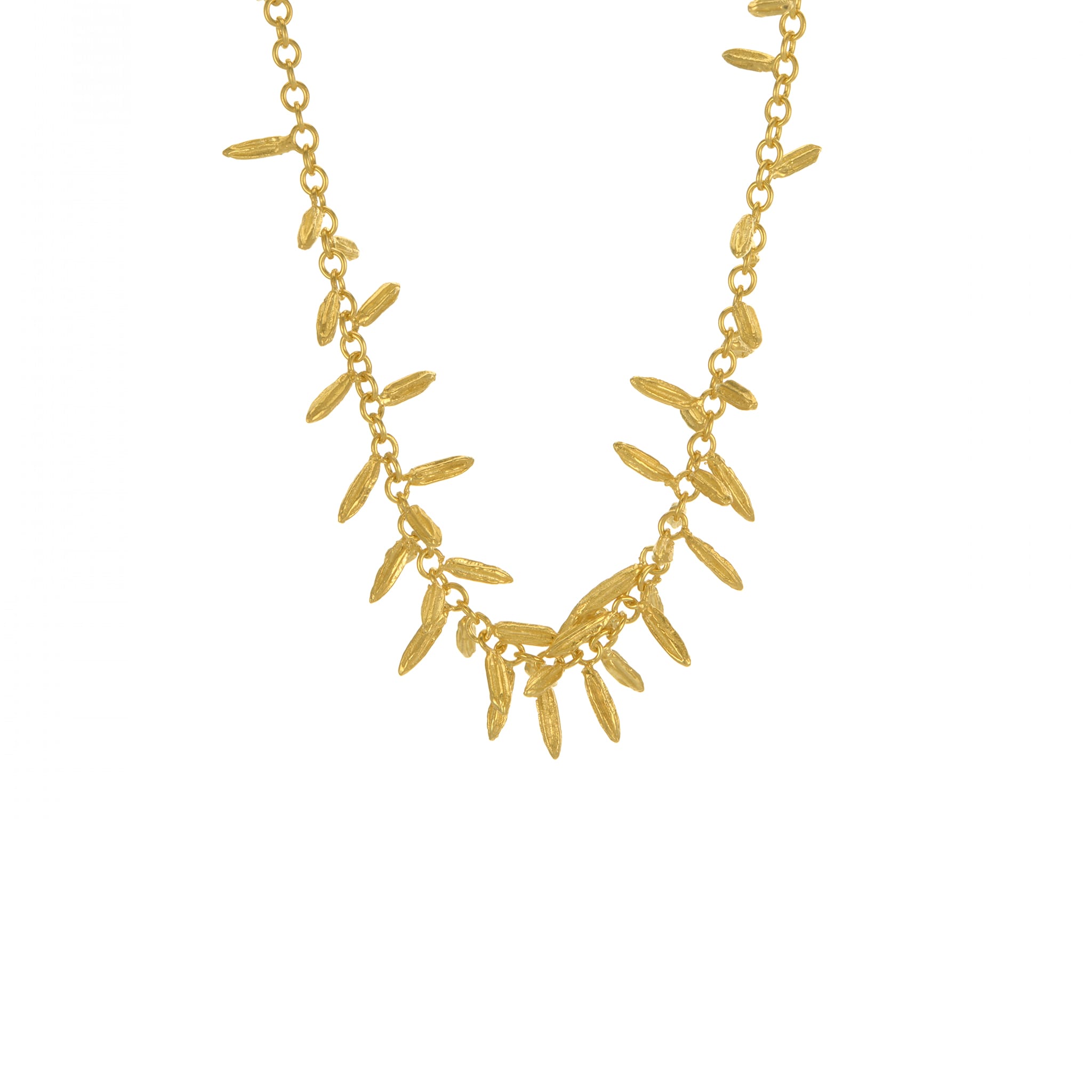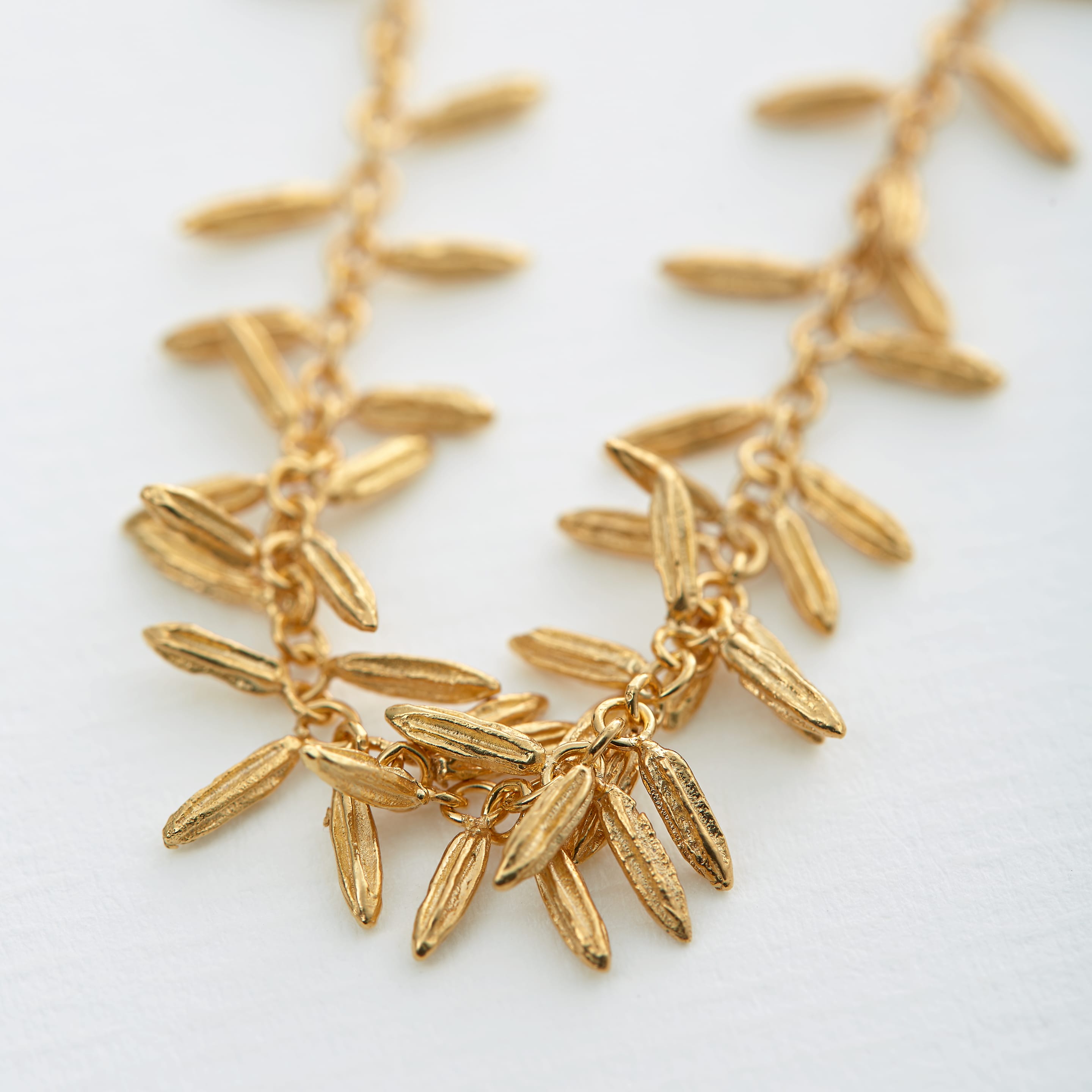 Individually textured fennels seeds decorate an ornate, limited edition necklace. A collection of organic details and texture, Alex's ‘Natural Life’ collection takes a look at the beauty of seasonal changes in nature.