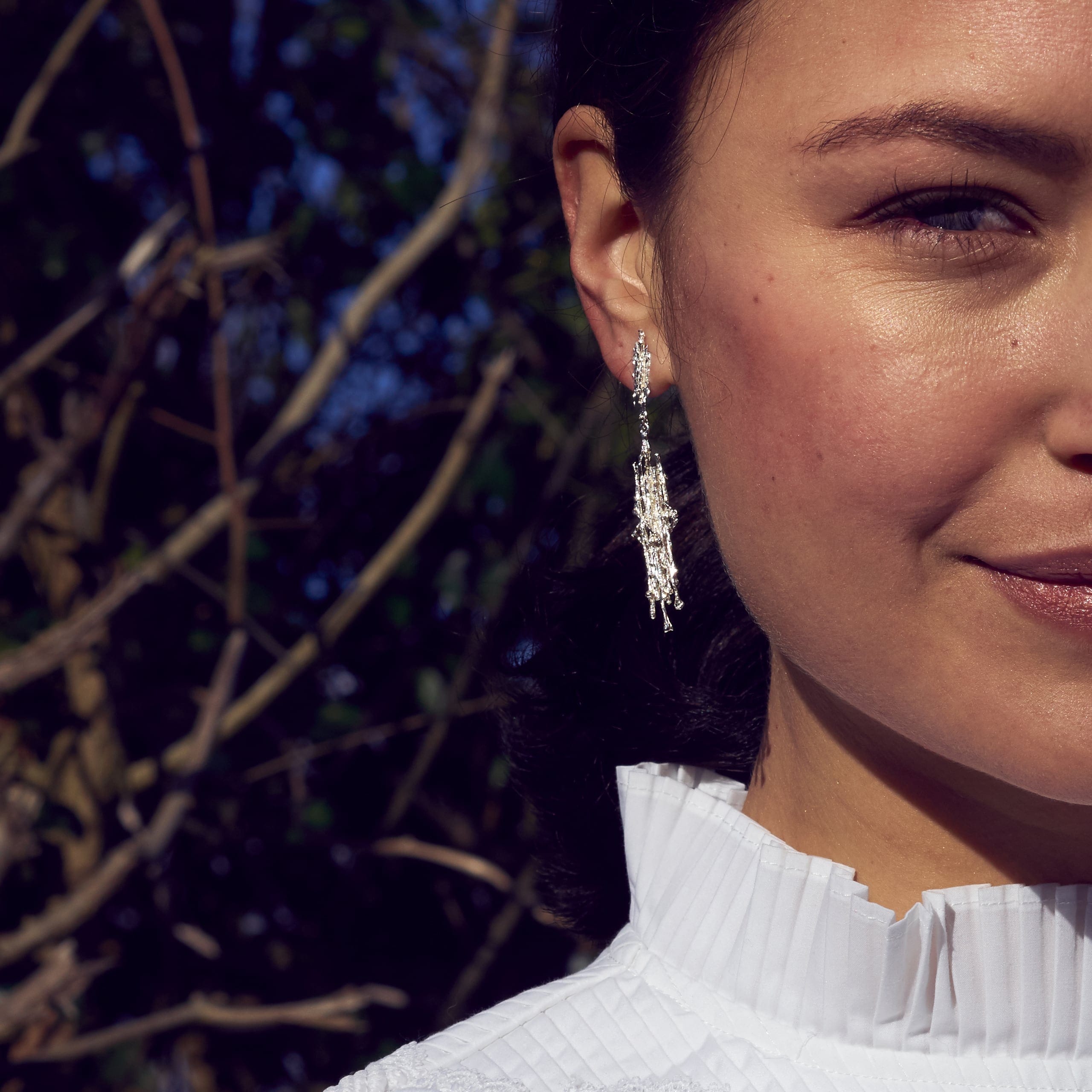 Inspired by the structures of nesting birds, these statement drop earrings fuse nature with art deco style. A collection of organic details and texture, Alex's ‘Natural Life’ takes a look at the beauty of seasonal changes in nature.