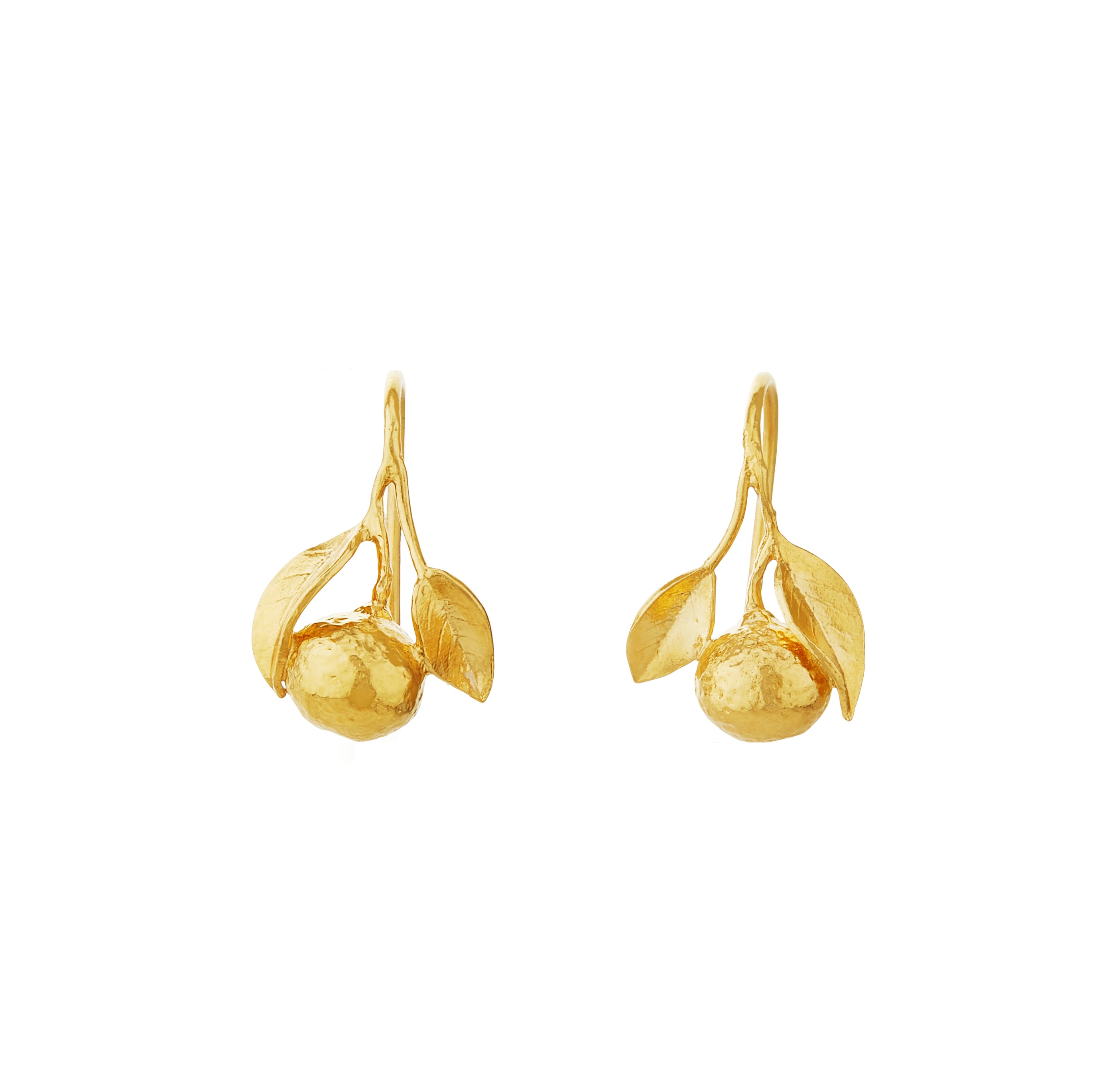 Sweet looking oranges hang beneath luscious leaves, with fine branches forming hooks on these ready to pick earrings. Handmade in Sterling Silver and plated with Fairmined Gold.