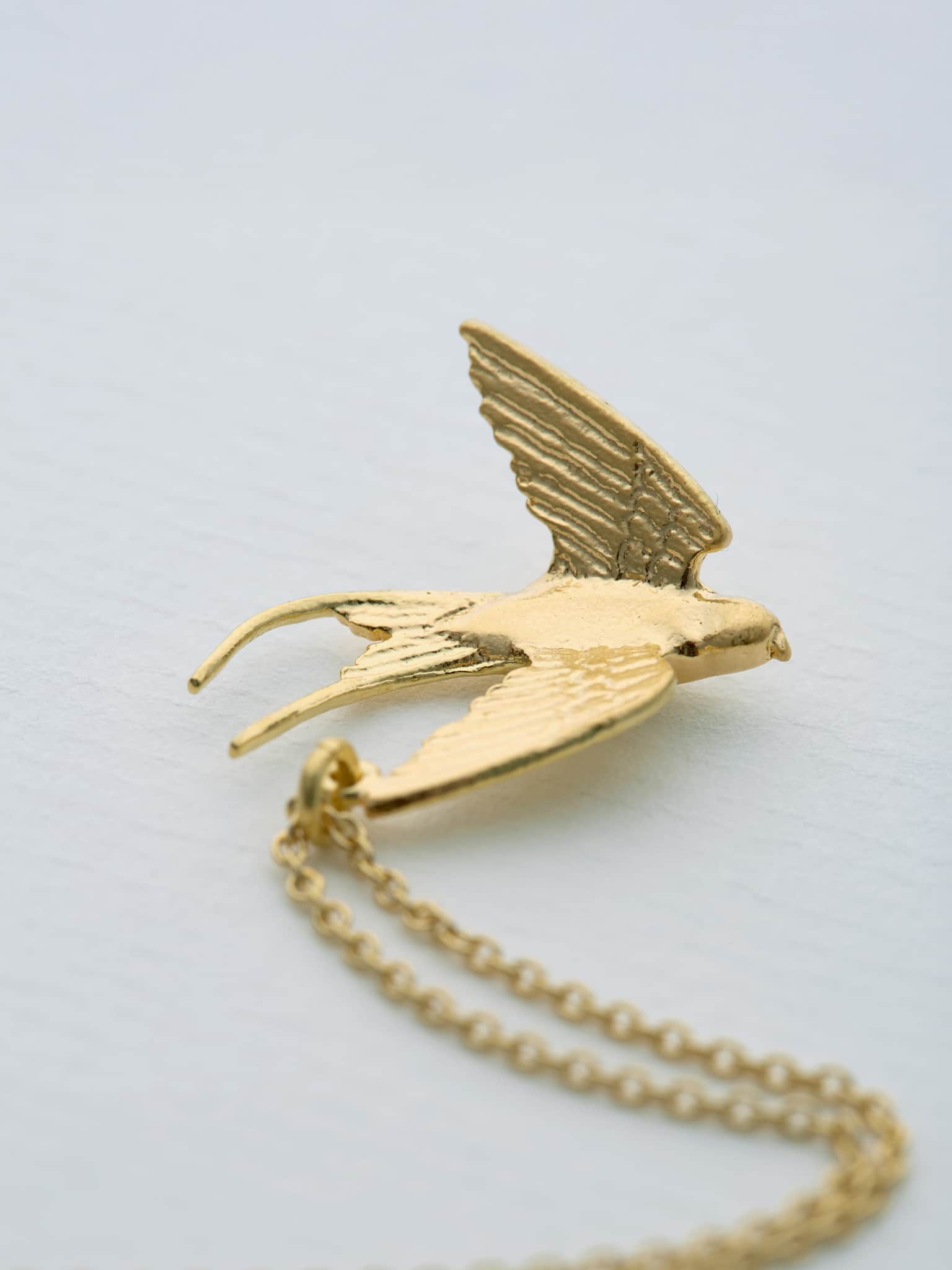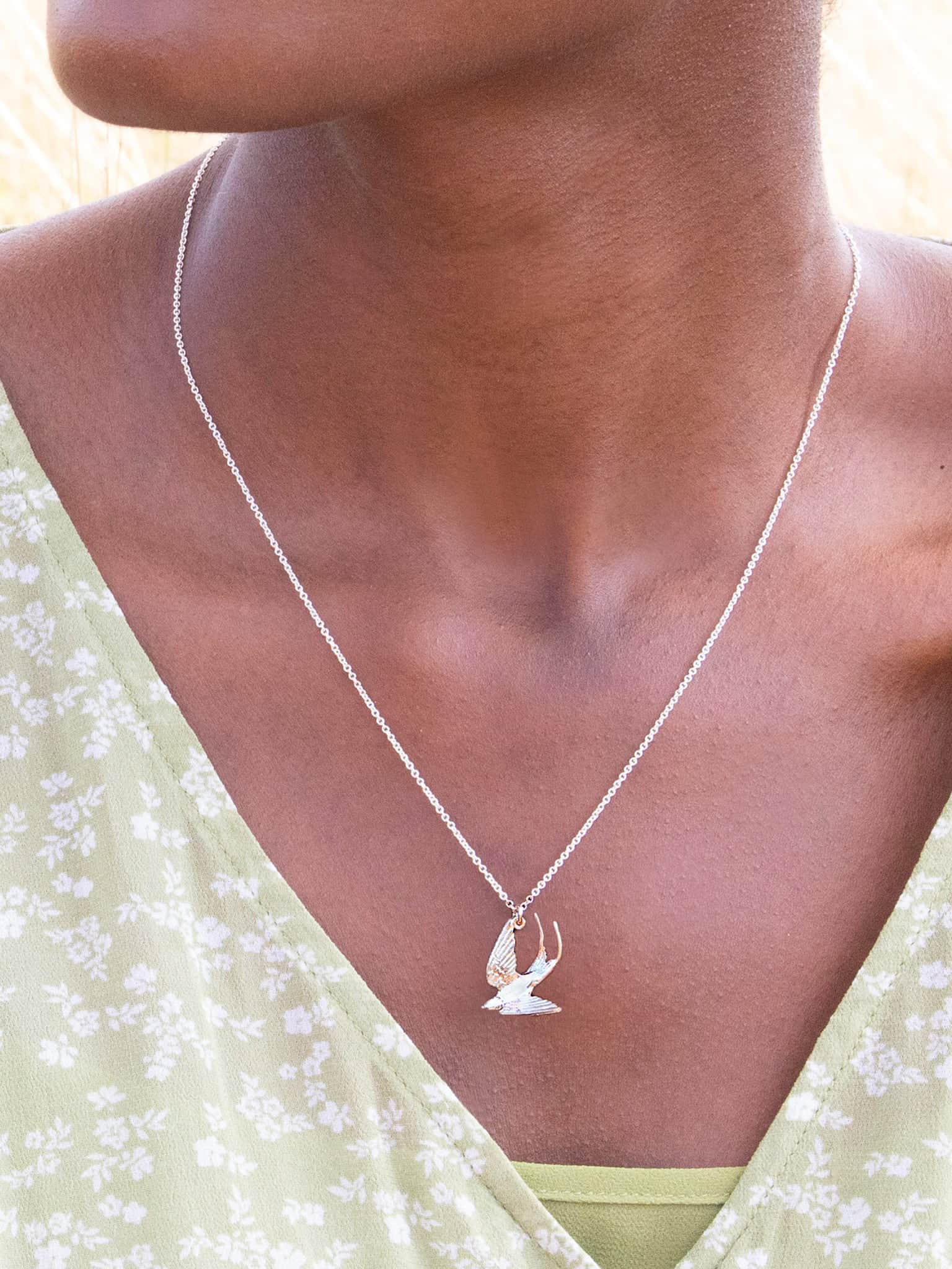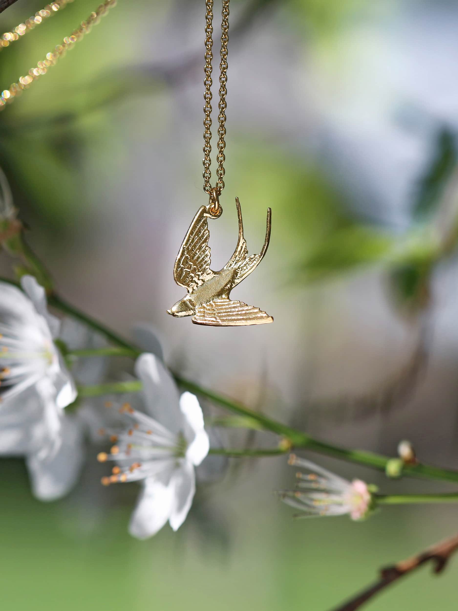 An elegant swallow swoops towards the sea in this dynamic pendant necklace! Alex Monroe Jewellery is inspired by nature and handcrafted in our London Workshop.