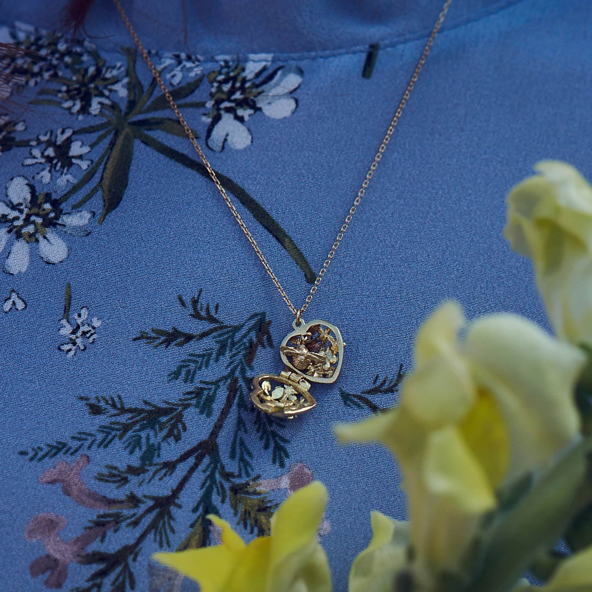 https://www.alexmonroe.com/the-beekeeper-s-hidden-bee-locket21390The Beekeeper's Hidden Bee Heart Lockethttps://www.alexmonroe.com/media/catalog/product/t/b/tbl1-18y_-_paper.jpg850850GBPInStock/Collections/Collections/The Beekeeper/Jewellery/Necklaces/Lockets/Fine Jewellery/Fine Jewellery/Fine Necklaces/Wedding Jewellery/Wedding Gifts/Collections/The Beehive/Collections/Say it with Love/Wedding Jewellery/Bridal Jewellery/Jewellery/18ct Gold Jewellery/Jewellery/18ct Gold Jewellery /18ct Necklaces/Fine Jewellery/Collections/Spring Favourites/Collections/Buzzing Bees & Summer Daisies/Jewellery/Necklaces/18ct Gold Necklaces/Jewellery/Shop/Collections/Animal Favourites/Gifts/Fine Jewellery Gifts/Gifts/Valentines Gifts/Wedding Jewellery/Bridesmaids Jewellery3208218298308327872903893284304327455465279443647250839615512348290298331430516The teeniest of bees is treasured within a miniature 18ct gold heart locket, adorned with flowers and leaves. <style>#html-body [data-pb-style=M9F09YA]{justify-content:flex-start;display:flex;flex-direction:column;background-position:left top;background-size:cover;background-repeat:no-repeat;background-attachment:scroll;border-style:none;border-width:1px;border-radius:0;margin:0 0 10px;padding:10px}#html-body [data-pb-style=YMG800J]{border-style:none;border-width:1px;border-radius:0;margin:0;padding:0}</style><div data-content-type="row" data-appearance="contained" data-element="main"><div data-enable-parallax="0" data-parallax-speed="0.5" data-background-images="{}" data-video-fallback-src="" data-element="inner" data-pb-style="M9F09YA"><div data-content-type="html" data-appearance="default" data-element="main" data-pb-style="YMG800J">The teeniest of bees is treasured within a miniature 18ct gold heart locket, adorned with flowers and leaves. Discover our special fine jewellery collection created in celebration of the 10th anniversary of Alex’s iconic Bumblebee Necklace! In The Beekeeper, flowers and leaves entwine to reveal miniature bees nestled within. Handcrafted from 18ct gold, the Beekeeper is handcrafted in our London Studio.</div></div></div>Fine Jewellery15https://www.alexmonroe.com/media/catalog/product/t/b/tbl1-18y_-_1.jpghttps://www.alexmonroe.com/media/catalog/product/t/b/tbl1-18y_-_modelled.jpghttps://www.alexmonroe.com/media/catalog/product/t/b/tbl1-18w_-_2.jpgTBL1anniversary:50th - Goldbrand:Fine Jewellerychain_length:40.5 cm - 45.5 cm (16" - 18")chain_type:Teeny Tiny E25 - Fine Chainsku:TBL1theme:Heartschain_length:40.5 cm - 45.5 cm (16" - 18")necklace_type:Locketproduct_collection:The Beekeeperproduct_theme:Bees, Botanical, Flowers, Heartsstyle:Lockettype_of_product:Necklacearchive_sale:Nocurrent_archive_style:Nodiscount_excluded:Noexclude_list:Noimage:/t/b/tbl1-18y_-_paper.jpgis_new_product:Nois_personalisation_option:Nolead_weeks:10lifestyle_image:/t/b/tbl1-18y_-_modelled.jpglimited_quantity:Noone_of_a_kind:Nopersonalisable_product:Nosmall_image:/t/b/tbl1-18y_-_1.jpgthumbnail:/t/b/tbl1-18y_-_1.jpg18303The Beekeeper's Hidden Bee Heart Locket850850https://www.alexmonroe.com/media/catalog/product/t/b/tbl1-18y_-_paper.jpgTBL1-18YInStock18ct Yellow Gold50th - GoldNoFine Jewellery40.5 cm - 45.5 cm (16" - 18")Teeny Tiny E25 - Fine ChainNoNoNo/t/b/tbl1-18y_-_paper.jpgNoNo10/t/b/tbl1-18y_-_modelled.jpgNoLocketNoNoThe BeekeeperBees, Botanical, Flowers, HeartsTBL1/t/b/tbl1-18y_-_1.jpgLocketHearts/t/b/tbl1-18y_-_1.jpgNecklace2024-10-09NoPlease select a static block.StandardJust like you, our beautiful jewellery does need to be looked after. We have compiled a list of hints and tips for you on how to care for your Alex Monroe jewellery, so it will look as lovely as the day you received it. Many customers continue to enjoy wearing their Alex Monroe jewellery after owning it for 25 years!