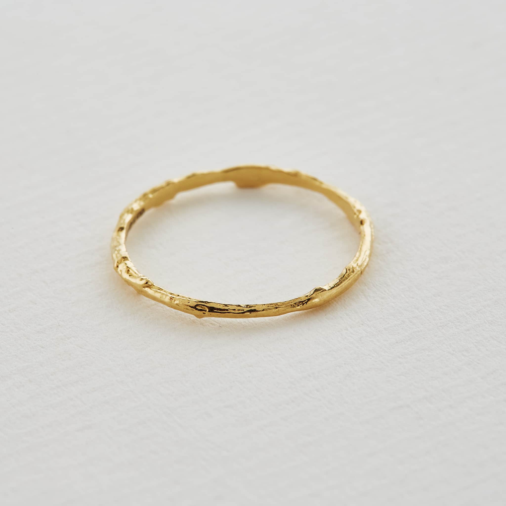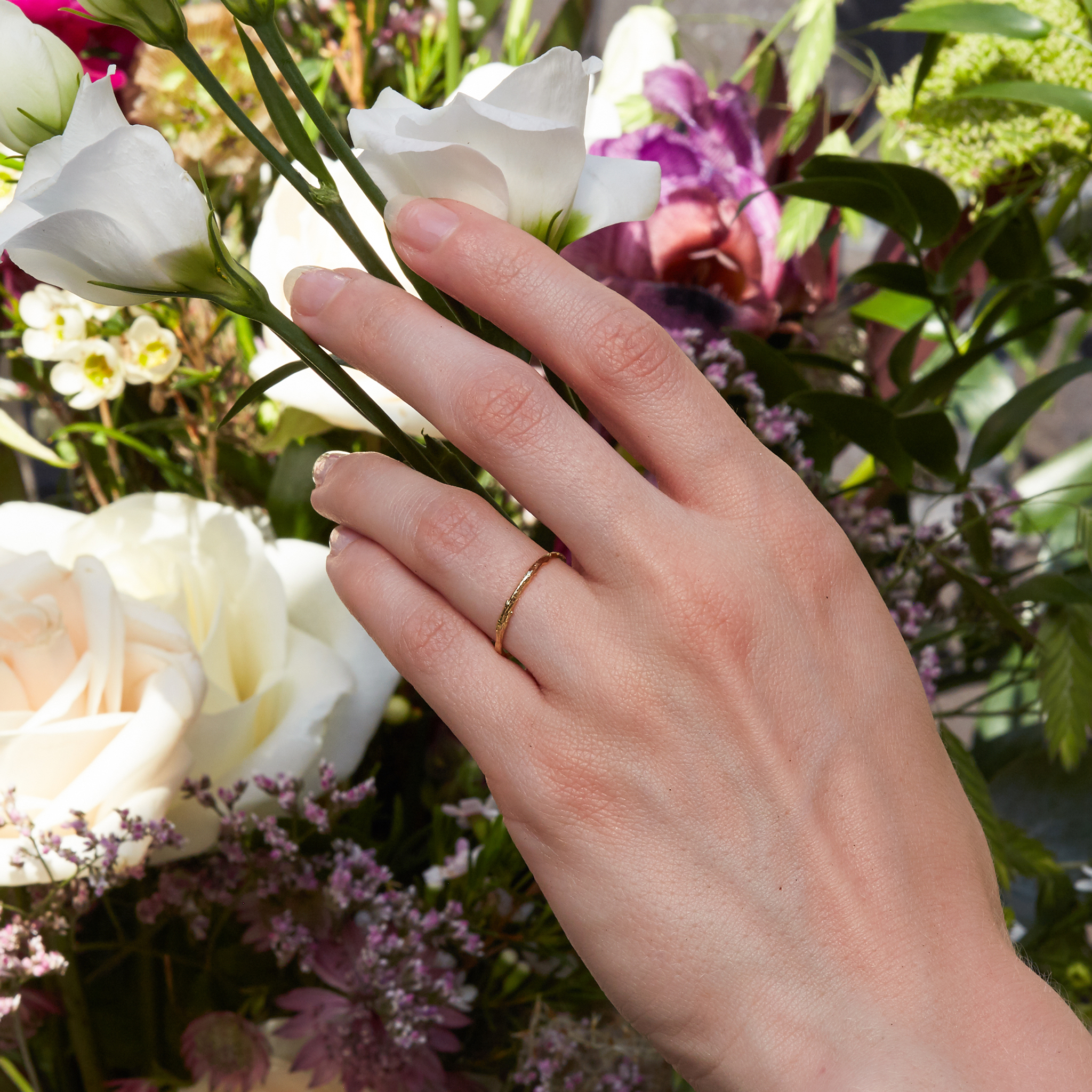A 1.8mm fine band is handcrafted from 18ct gold or platinum and detailed with organic texturing, inspired by the markings of a willow tree. All Alex Monroe fine jewellery rings are handcrafted from 18ct gold or platinum in our London studio.