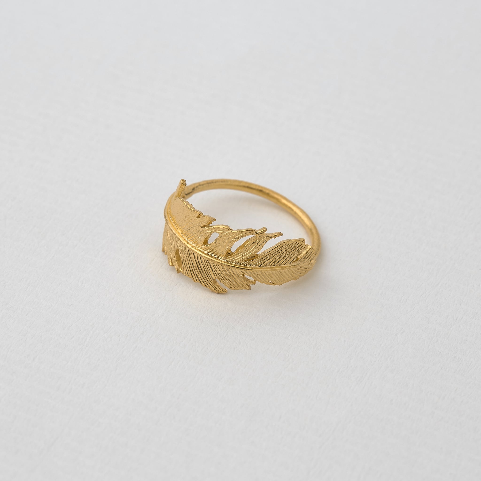 A single fallen feather curves to form a ring with a lightly textured band! Alex Monroe Jewellery is inspired by nature and handcrafted in our London Workshop.